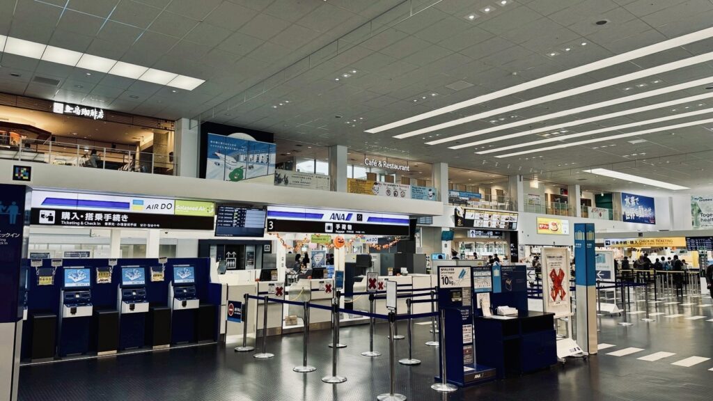 ポートアイランドの先に位置する海上空港。駐車場には徳島ナンバーや香川ナンバーなど、四国関係の乗用車が多く駐車していた。