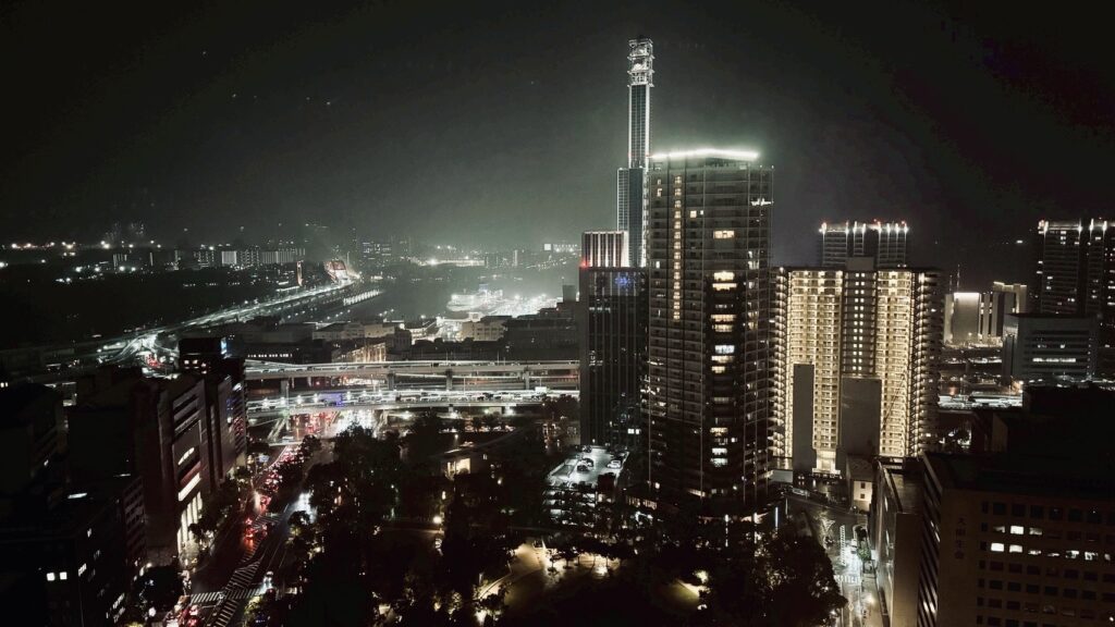 神戸市役所は夜景スポットとしても有名で、展望ロビーからは三宮駅周辺やハーバーランド方面を見渡せる。夜の22時頃まで利用が可能。