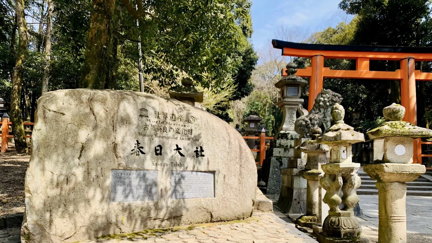 768年に創建された神社。藤原氏の氏神を祀り、朱塗りの本殿や約3,000基の灯籠が特徴的。世界遺産「古都奈良の文化財」の一部としても知られている。